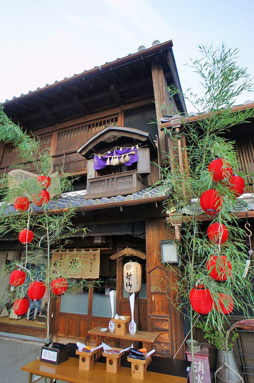 ▲美濃の『うだつの上がる町並み』の随所に見られる庇の上の祠。これは「屋根神様(やねがみさま)」とも呼ばれ、火伏せの神様として祀られているものだ。ちょうど取材時には、各建物の軒先に赤い提灯が掲げられ、屋根神様のお祭り『秋葉祭り』の準備が進められていた。江戸時代から続く組ごとのお祭りが今もしっかり継承されている上有知(こうづち)時代に水害に悩まされ続けたことから、この地域は町おこしをして高台に移ってきた。