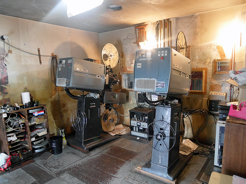 昔のまま、フィルムの映写機も残っていますよ。1950年代と1970年代の映写機ですが、昔のものは優秀で現役です。フィルムの映像は暗みが合って奥行きがよく見えていいですよ。昔はフィルム缶を隣の映画館に運んだりして上映していたようです。昔のフィルムはすぐに熱くなり自然発火することもあったので、天井には熱を強制排気するための通気口が残っています。火の神様も祭ってあります」と、岸田さん。