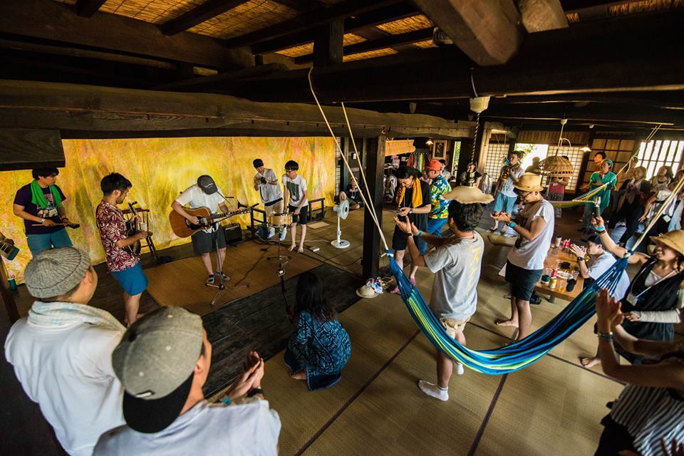 「文化財ロックは家が会場なので、自分の家や実家にいるみたいに、好きなことをして楽しんでほしいです。誰が何をしていてもよくて、ライブを見ている人もいれば、芝生でお酒を飲んでいる人もいたり、座敷で寝ている人もいる。居間では父親と母親がお茶を飲んでいたりと、家族みたいな感じです。文化財に興味がある人もいれば、ただ楽しいからと来てくれる人もいる。建築に興味のない人にも関心を持って欲しいという思いがあるので、どちらの人が来ても大歓迎です。」