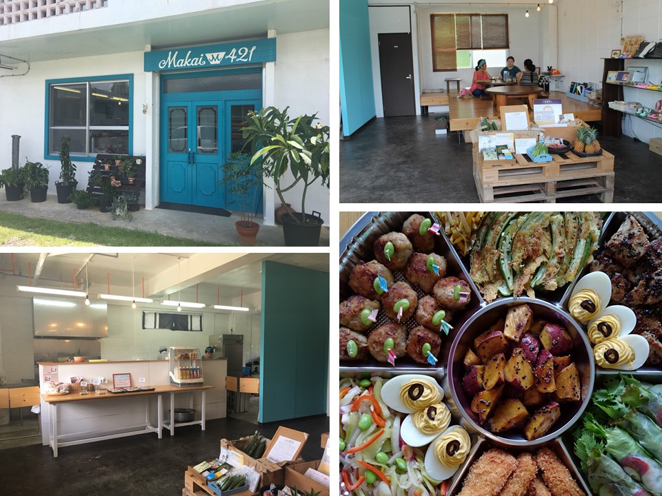 また、この屋部への引っ越しをきっかけに、奥様の康子さんは、借り受けた一軒家の1Fを改装し、畑で育った青果では出せない規格外の野菜を使った加工品やおかず・お弁当を作り、イートインスペースを設けたおかずとお弁当のお店「Makai421」を開店させた。