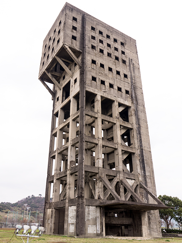 日本が近代国家に生まれ変わるための重要なエネルギー源だった石炭だが、九州北部には数多くの炭田があり、志免町では江戸時代から個人の石炭採掘が行われていたという。1889(明治22)年に志免鉱業所の前身となる海軍新原採炭所が開かれ、志免町に採掘が広げられたのは1906(明治39)年のようだ。戦時中は軍事上の重要な施設であったが、上層炭が枯渇し始めたために下層炭の開発が必要になり、巨大な竪坑櫓が計画された。