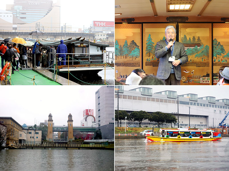 参加者たちは、あいにくの悪天候にも関わらず、最後まで学芸員やボランティアガイドの解説に熱心に耳を傾け、一様に満足そうな表情を浮かべて帰路についた。普段見ることができない中川運河や堀川の眺めに、船内から夢中で写真を撮る人も。歴史好きと思われる中高年の一行からも「それは知らなかった」「なるほど。勉強になった」といった声が聞かれ、新たな発見の連続に終始楽しげな様子だった。