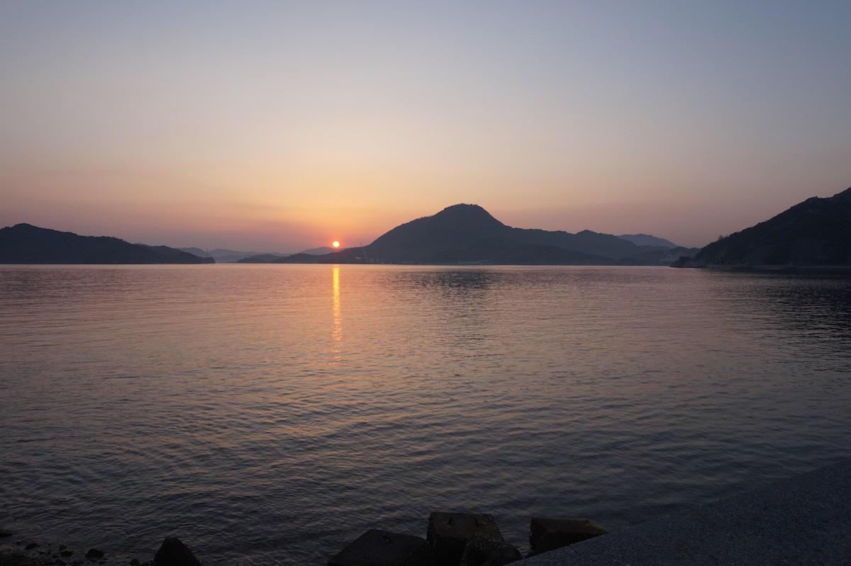 佐島はとても静かな島で、宿から数分の船着き場から夕日が美しく見え、凪が心地よい。