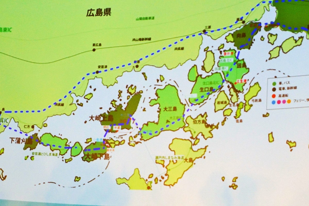 続いて中村氏による瀬戸内ディープラインの提案がされた。福山を瀬戸内海の玄関口とすることで、ここに立ち寄る必然性をつくり、福山の活性化につげようというもの。そのために島々の魅力が大切になってくる。
