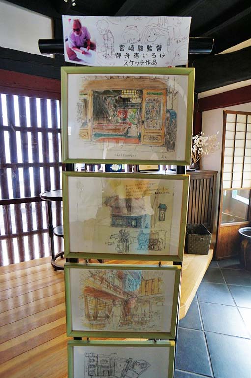 ▲宮崎監督が手描きで残してくれたという『御舟宿いろは』のリノベーションイメージのスケッチ。この『御舟宿いろは』は、宮崎アニメファンだけでなく、坂本龍馬ファンからも“聖地”として崇められている建物。慶応3年4月、伊予国大洲藩の西洋船が紀州藩の明光丸と衝突。そのまま鞆港に曳航しようとしたものの浸水のため宇治島沖で沈没した『いろは丸沈没事件』の際に、坂本龍馬をはじめとする海援隊が、紀州藩側へ賠償交渉を行った場所として伝わる建物だ(御舟宿いろはについての詳細は別レポートにて紹介)全国各地の“古いまち並み”を取材していると(これは多くのまちで生じている共通の課題なのだが)どの地元でも「今のまち並みを残したい」と考える人たちと、「新しく機能的なまちに変えたい」と考える人たちの間で意見が対立しがちだ。