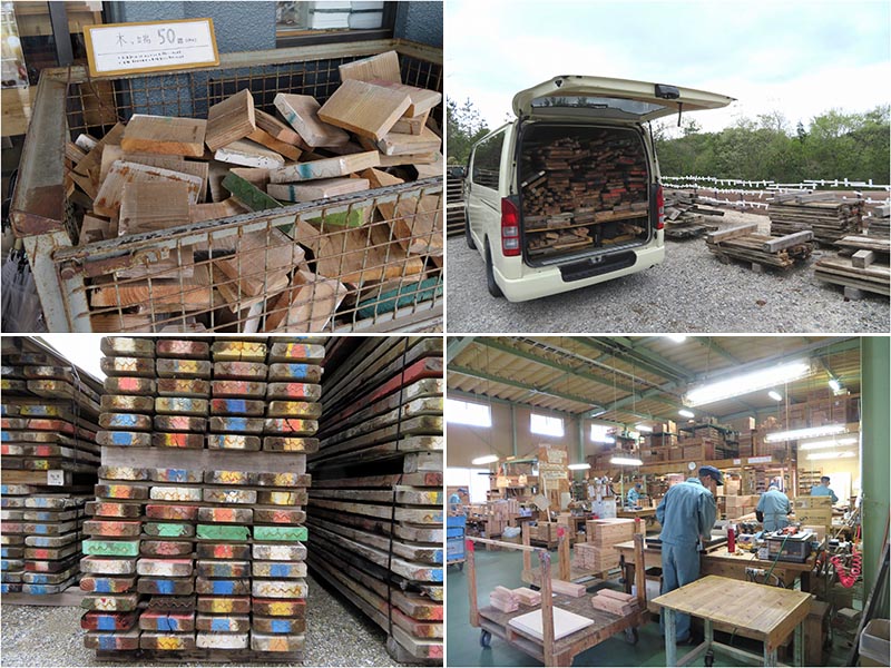 それだけ貴重な杉足場板である。同社が開いている広島市のショップに行くと使える部分だけを15cm、30cm、45cmに切った木片が売られており、驚いたことにそれがかなりの売れ筋商品になっている。使えるものは徹底的に使われているのである。不要と思われるモノにほんの少し手間を加えることで商品になることは頭では分かるものの、ここまで徹底している会社は少ないのではなかろうか。びっくりである。