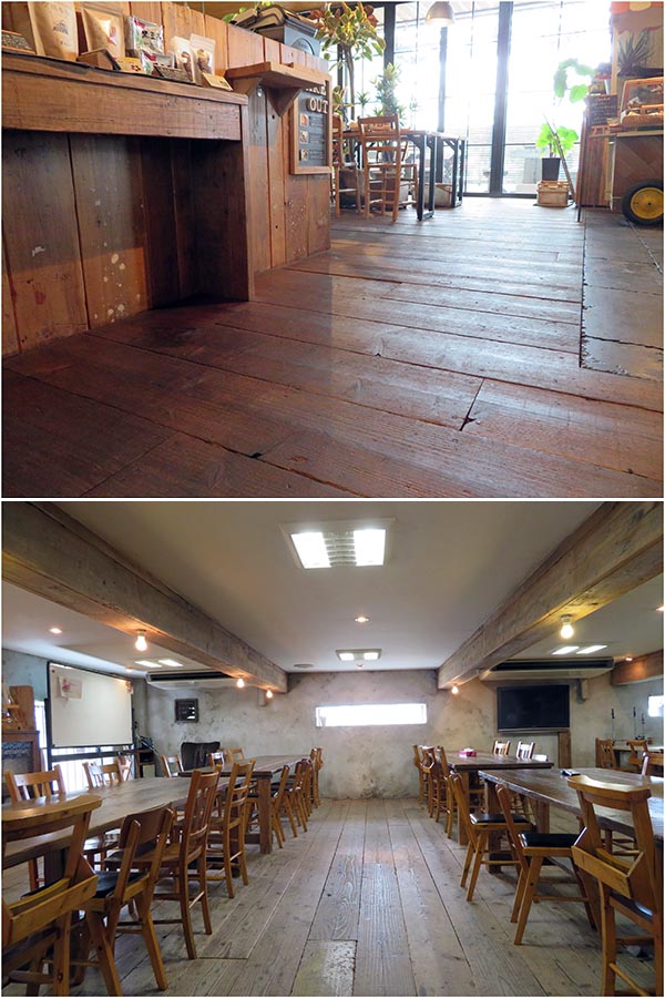 商品がようやく売れ始めた2002年頃、新しい動きがあった。店舗内装の材料として杉足場板の使い古した感をデザインに生かそうとする人が現れたのである。「見に行ってみたらまさに目から鱗。それまで私たちは表面を削り、化粧をして商品にしていましたが、彼は使い古した風合いを生かし、そのままで使っていた。それにヒントを得て2003年からは板そのものを素材として売り始めました」