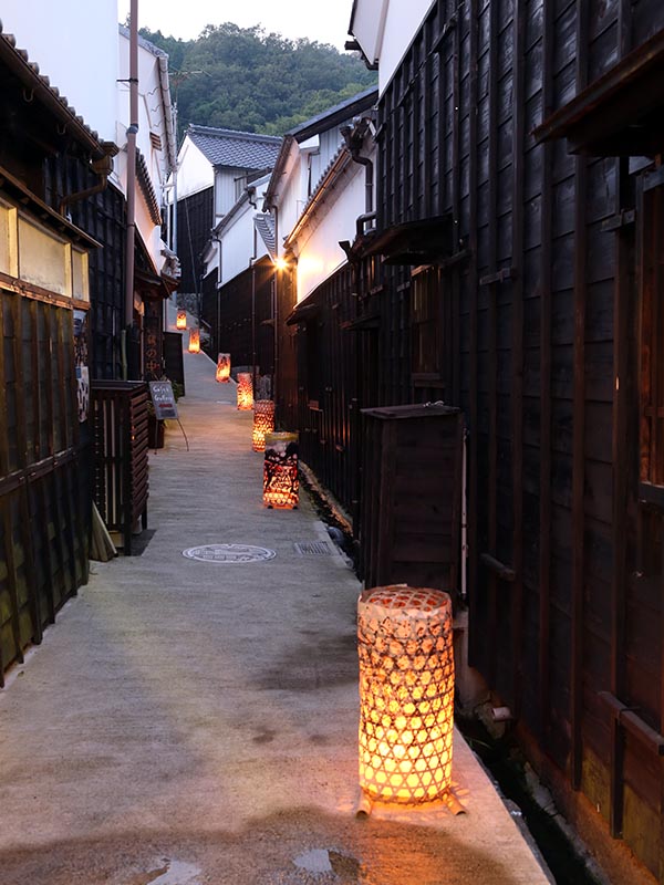竹かごと和紙で作った円筒形の行灯を街道沿いに灯し、情緒を演出するイベントで、今や足助の夏の風物詩といってもいい。
