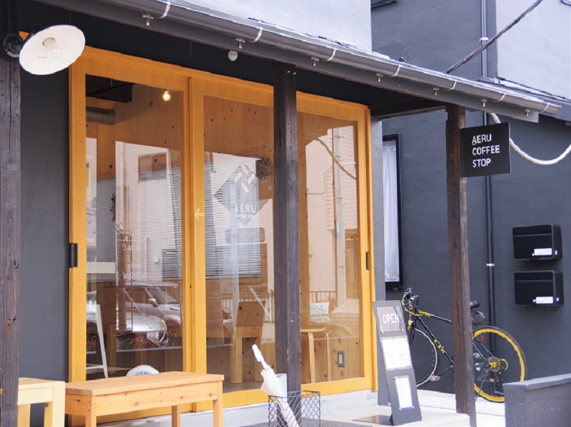 「コトイロの家」の隣には、3軒目のリノベーション物件として1階が店舗、2階が住居という形の店舗兼住居を作った。4軒長屋を2軒にしたぶん、それぞれの間口が広くなっている。現在はコーヒーショップ「AERU COFFEE STOP」と、自転車屋「BICYCLE STUDIO R-FACTORY」の2店舗が入居、営業中だ。