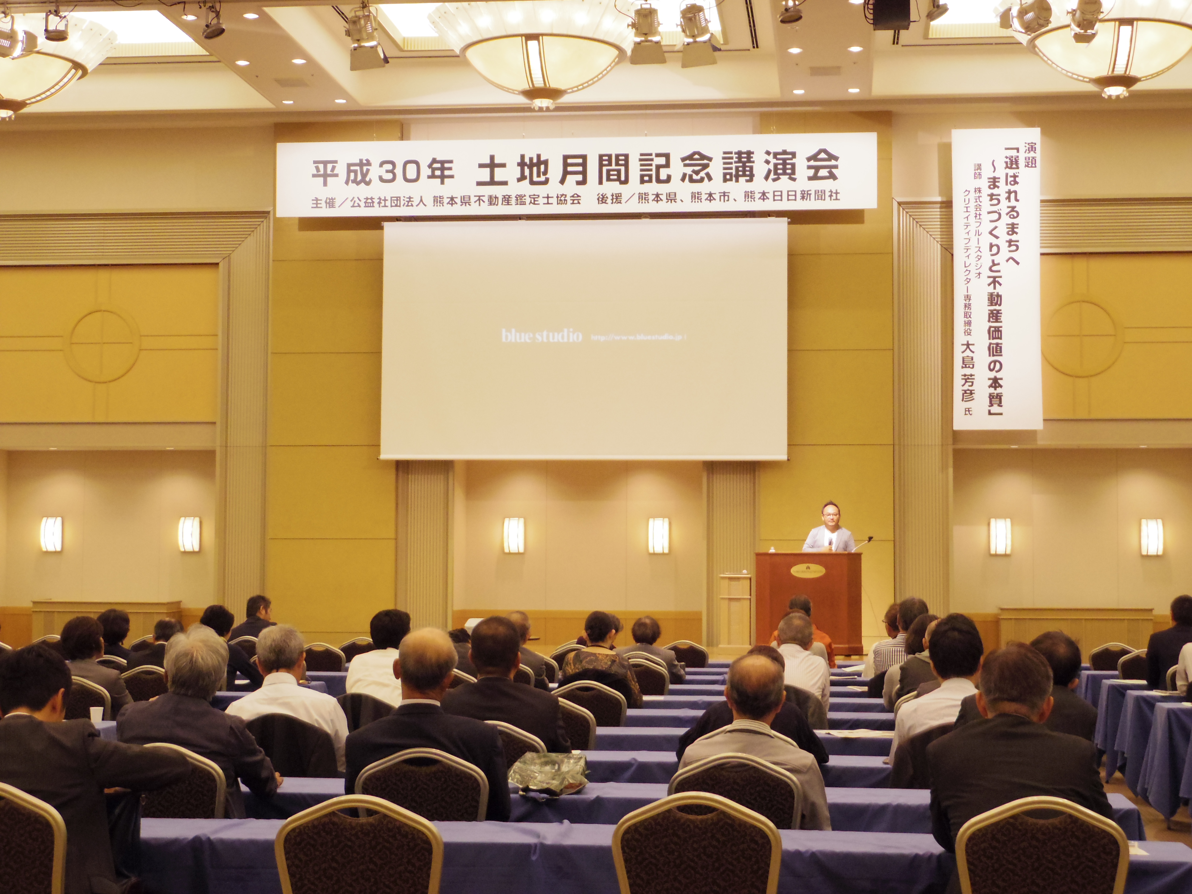 主催は公益社団法人熊本県不動産鑑定士協会、講師は全国でリノベーションまちづくりを牽引する建築家の大島芳彦氏(株式会社ブルースタジオ専務取締役)である。講演テーマは、「選ばれるまちへ〜まちづくりと不動産価値の本質」。