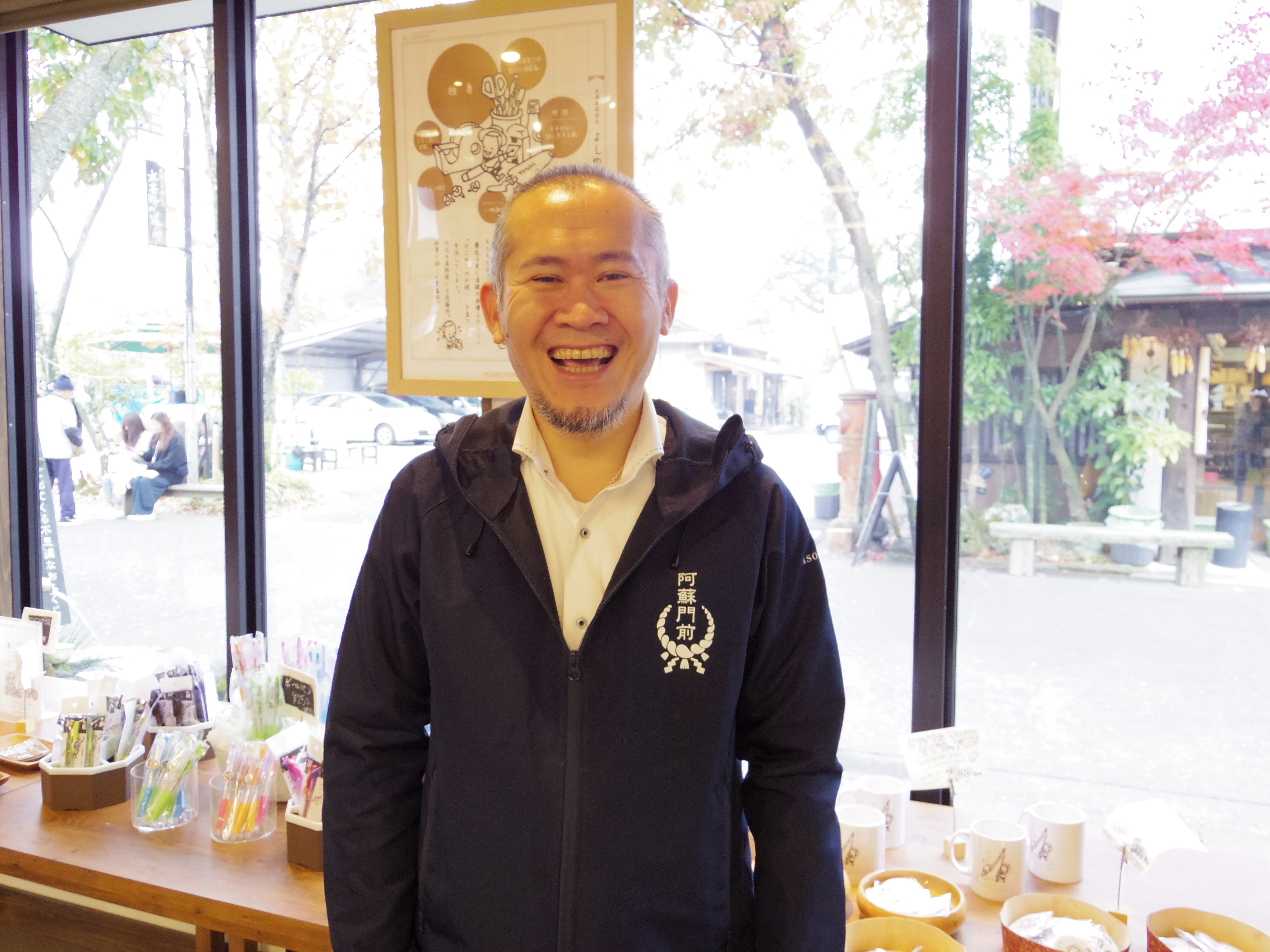 お話を伺ったのは、一般社団法人阿蘇門前町商店街振興協会 理事の岩永芳幸さん。商店街にある大正2年創業の老舗文具店「丹波屋」の4代目だ。