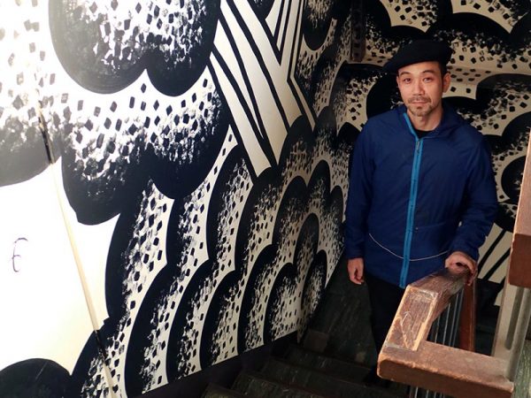約10日間でビルのアートを手がけた相川さん。階段のアートを手がけていると、まちの人が声をかけてくれることも多かったとか。