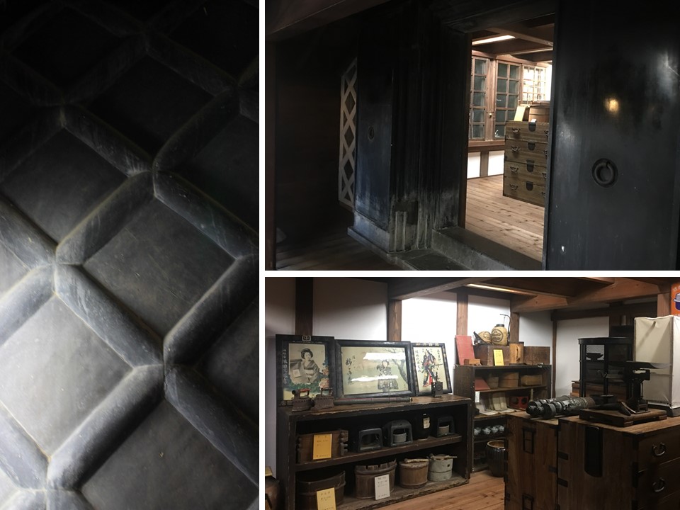 商家だけに蔵も有しているが、建物の中、部屋に続いて蔵がしつらえてあるのもまた珍しい。富の象徴なまこ壁でつくられているがそれも黒漆喰だ。さらに、奥の離れとつながる廊下には船底天井というこだわりよう。明治の頃、名を馳せた商家の暮らしというのはどのようなものだったのだろうか。