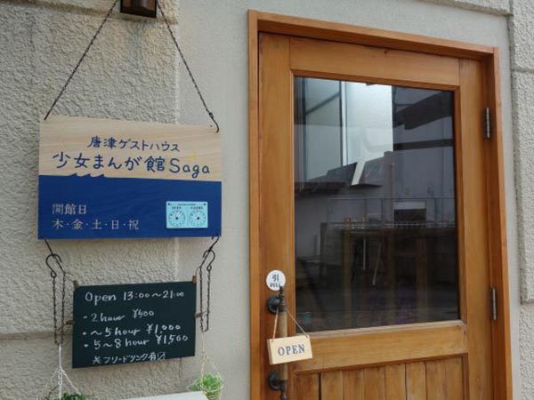 「少女まんが館Saga」。インパクトのあるこの屋号、一見すると少女漫画を専門とする本屋のように思えるが、実は、大の少女漫画好きというオーナーが開業したゲストハウス。東京都あきる野市の私設図書館「少女まんが館」の姉妹館(自主独立)で、本家にない宿泊機能を備えている。
