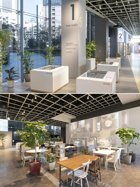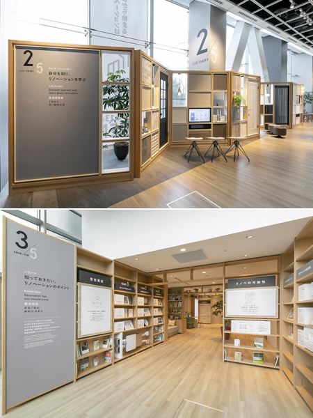 フロアスペースの構成は、「リノベーションに関するさまざまな知識を学ぶエリア」「リノベーションで得られる暮らしに憧れを感じるエリア」「リノベーションをしたいという思いを実現するエリア」と大きく3つのエリアに分けられ、自分たちの状況や条件に合わせて利用することが可能になっている。