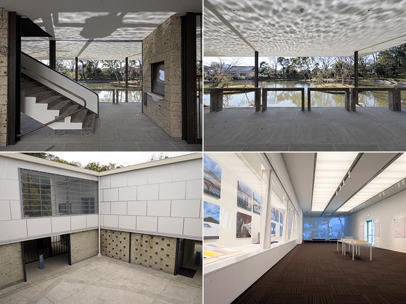 建物内でひときわ目を引くのが、池に面したピロティの白い天井に映る波紋の美しさ。