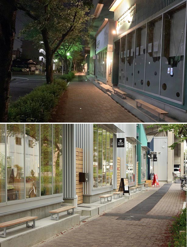 閑静な住宅街という一面から、夜はとても静か。筆者も、女性1人で歩くには静かすぎる、と感じたこともあった。そんな中で、この商業施設に入る店舗は22時までオープンしているところもある。さらに、同社が新たに照明を配置した。