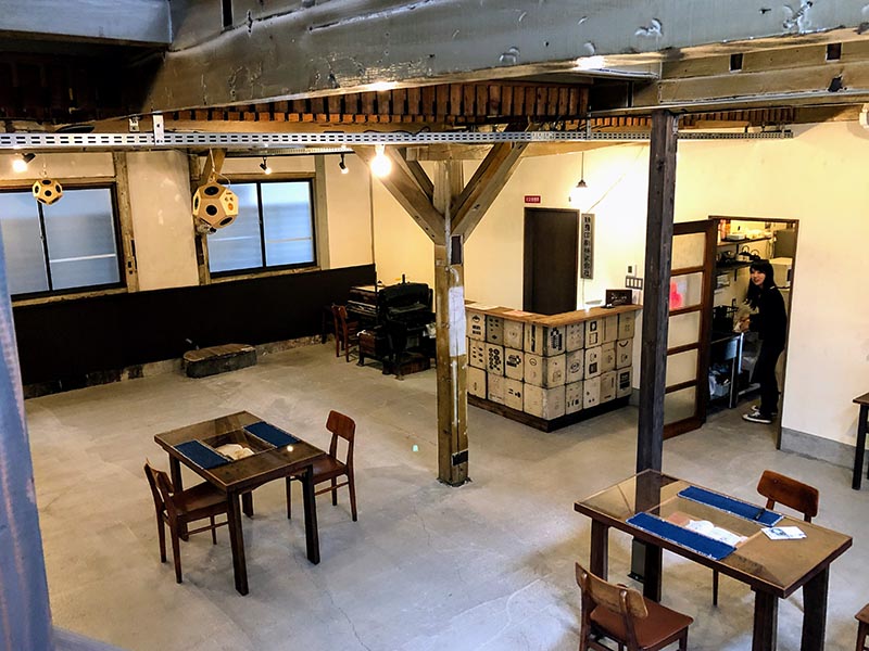 言い伝えによれば、この建物ははじめ小学校の講堂として建てられた。記録は残っていないのだが、建物に残された幅広の木の階段は、確かに工場より学校にふさわしく見える。知子さんはこの場所に、「学び」を取り戻したいと考えた。