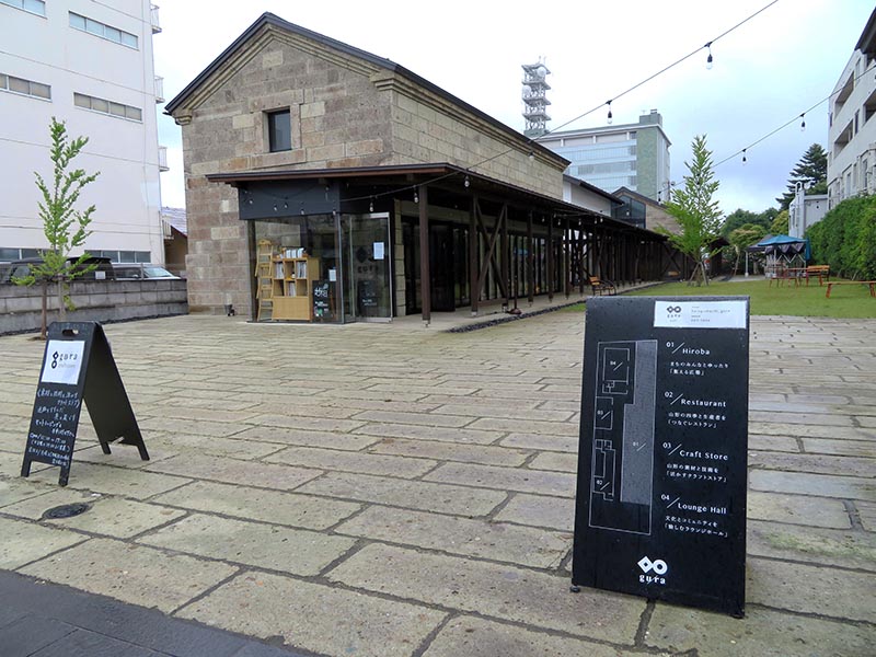 城下町だった山形市内にはその歴史を彷彿とさせる地名が多く残されている。中心部にある旅籠町もそのひとつ。江戸時代から続く町名で、羽州街道が通り、弘前藩や秋田藩などの本陣、そして多くの旅籠が並んでいた場所である。2018年3月、その歴史あるまちの、御殿医の流れを汲む医師の診療所・住宅「旧木村邸」があった場所にレストラン、クラフトストア、ラウンジホール(以下ホール)、広場からなる複合施設「gura」が誕生した。