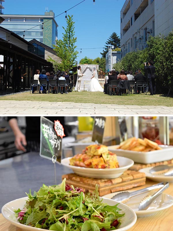 といっても店舗などを行政が運営するのは難しい。そこで公募が行われた。市が事業者に土地を貸すので、そこで中心部の賑わいに資す場をつくり、盛り上げて行ってほしいというわけである。何社かが手を挙げ、最終的に選ばれたのは地元で長く続く建設会社・山形建設株式会社だった。ちょうど、同社が100年を迎えようとするタイミングでもあり、その記念事業という位置づけもあったそうだ。