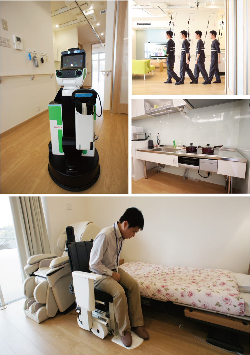 高齢者が住み慣れた自宅で生活を続けるためには支援が必須。そこで、移乗支援ロボットやテレビ型機器など各種支援機器を開発して製品化。それらが活躍できる空間をデザインし、リアルな場面で実証も行うというプロジェクトが愛知県で2016年から進められている。