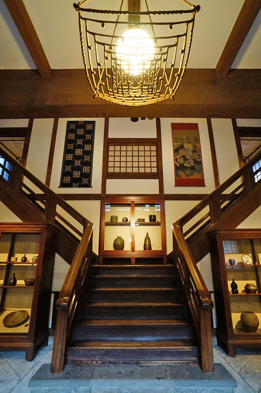▲海外渡航経験から、西洋や韓国の文化にも造詣が深かったという柳宗悦。この吹抜けの階段も、ヨーロッパで出会った建築様式を見て自分の中に蓄積し、和の建築美を融合して再現したものだと考えられる。「よく“民藝館にあるのは民芸品だけなの?”とご質問を受けるのですが、単に民芸品を展示しているのではなく、柳自身が美しいと思って収集したものを収蔵しています。その多くが“生活の中にある美”であって、使う人のことを思ってつくられた作品ばかり。あえて展示品には説明書きをせず、最低限の情報だけにしているのも開館当初からの柳のこだわりです。情報を極力抑えることで“このカタチがいいな、好きだな、触ってみたいな”と感じていただくことが大切なのです」天然素材が多く使われているぶん、建物の修繕が難しい