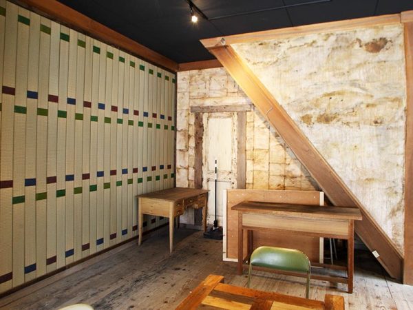 浦河リノベ部が再生したのは、中心市街地にある商店街で畳の製造・販売をしていた「三好畳店」。通りに面した広いガラス戸越しに見える、手仕事に勤しむ職人の姿が町民のなじみになっていた。大きな畳を扱う店ならではの広い土間や、時代を感じさせる太い梁、2階に続く急階段が特徴的だ。