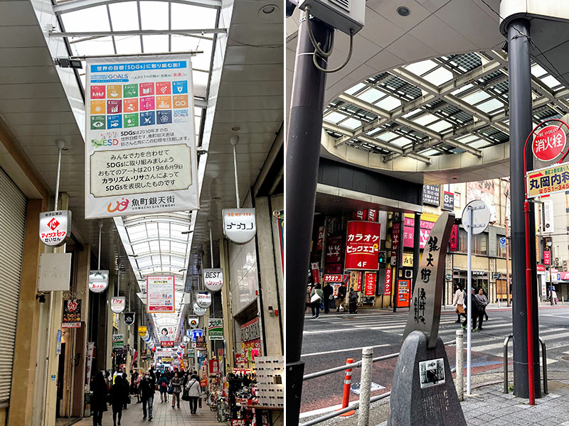 魚町銀天街は2018年に「SDGs商店街を目指します」と宣言。商店街の取組みをまとめた動画を発表し、「第1回SDGsクリエイティブアワードGOLD AWARD 」を受賞した。17の目標のうち、4番「質の高い教育をみんなに」と11番「住み続けられるまちづくりを」を中心に、すべての目標に取組んでいくという。