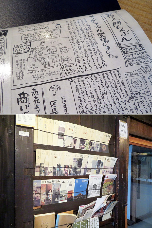 2003年4月にオープンしたナノグラフィカは学生時代からこのまちに暮らしてきた増澤珠美氏らがほぼ自分たちで改装した古民家で1階は喫茶室と土間ギャラリー、2階は編集室と住居となっている。といっても、最初から空き家再生を目的としてこの地に住み始めたわけではない。暮らしながら、活気を失うまちや、空き家となって放置される建物を見ているうちに、自然と動きが始まったというのが本当ではないかと思う。