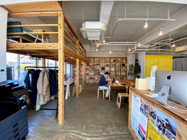 壁面にはグリッド状の「みんなの本棚」があり、糸島で活躍する人々やクラウドファンディングの出資者が、それぞれお薦めの本を並べている。推薦者のコメントが書かれたカードが添えられており、本を通したコミュニケーションが図られている。