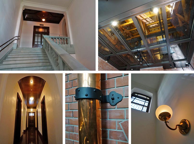 昭和の解体当時、“いつかまたこの建物のことを調べる時が来るかもしれない”と考えて残しておいてくれたのでしょう。手すりの他にも様々な部材が倉庫の中に眠っていたそうです。また、照明器具については、昭和期に蛍光灯に変えられてしまったので、もともとのデザインがわからなくなっていたのですが、同じくコンドルが設計した『旧岩崎邸(台東区池之端)』の照明デザインなども参考にして復元しました」