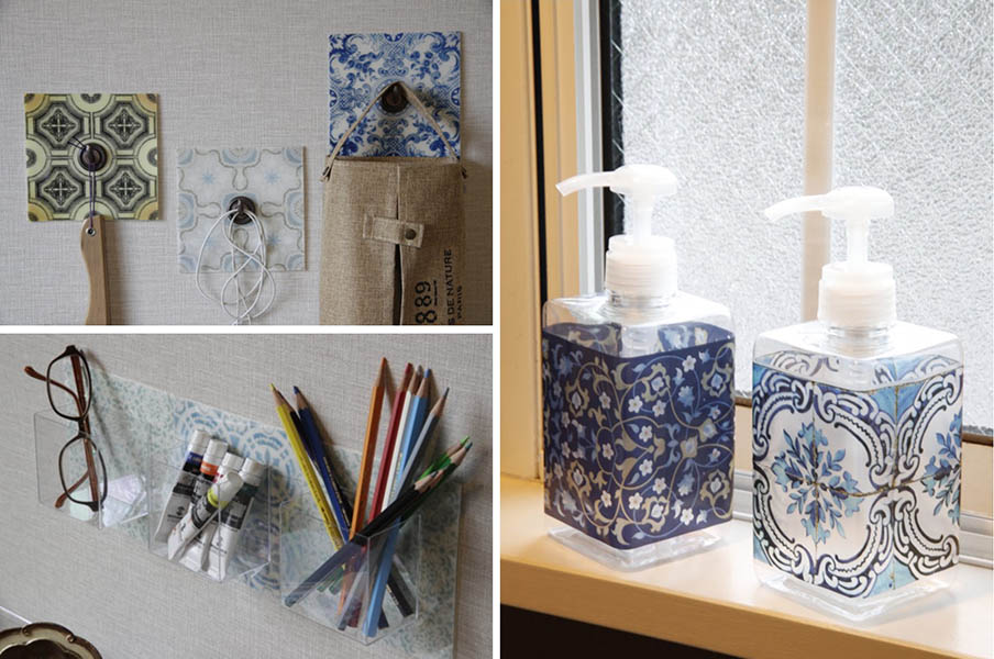室内だけでなく、バスルームや窓などに貼るという手もある。水回りの濡れる場所に貼る場合には紙製のマスキングテープではなく、水に強い透明のフィルムタイプのテープがお勧めだ。窓だけでなくガラス瓶などに貼っても楽しめる。