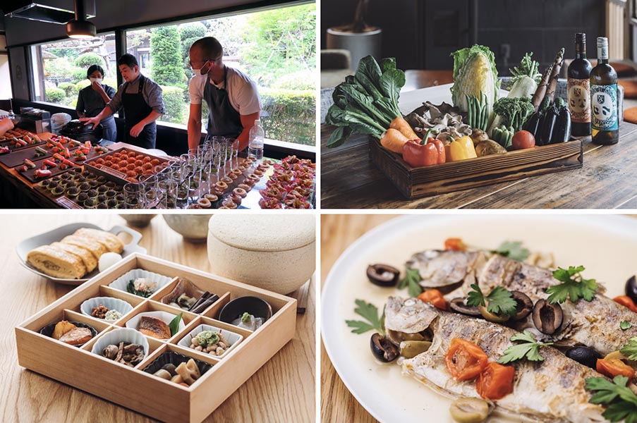 聞くと、イギリスの月刊誌レストランが選ぶ「世界のベストレストラン50」で4回、第1位に選ばれたデンマーク・コペンハーゲンにあるレストランnomaのヘッドシェフだったトーマス・フレベル氏、タイ料理研究家のカラヤ・ガムクム氏が、ホテルのシェフである鈴木啓泰氏とコラボ、創作したもの。フレベル氏は小菅村の食材に惹かれ、何度も訪れているのだとか。