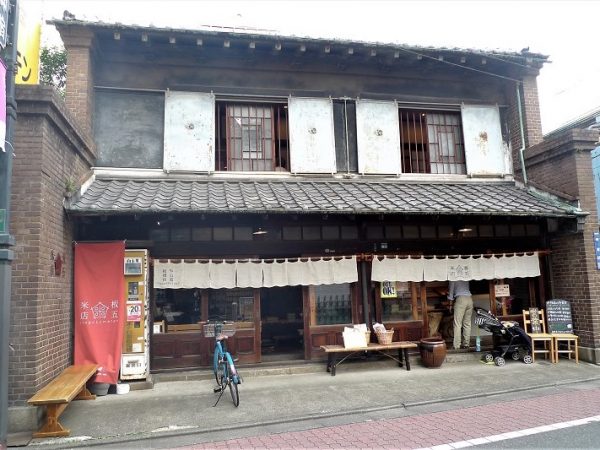 以前は「板五米店」という米店だった。2階建ての土蔵造りの建物は1914(大正3)年築。関東大震災や第2次世界大戦の戦火をくぐりぬけ、宿場町の町家の面影を残す建物として、板橋区の登録有形文化財になっている。特徴は、建物の左右両側の側面にレンガの壁が配され、洋風の意匠を取り入れていること。このレンガの壁の高さは2階の軒下まであり、火災が起きたときに延焼を防ぐ役割がある袖卯建になっている点も興味深い。さらには、レンガの壁が倒れてしまうのを防止するために引張鉄筋(テンションバー)が数ヶ所に設けられ、その昔の住まいづくりの工夫を知ることができる。