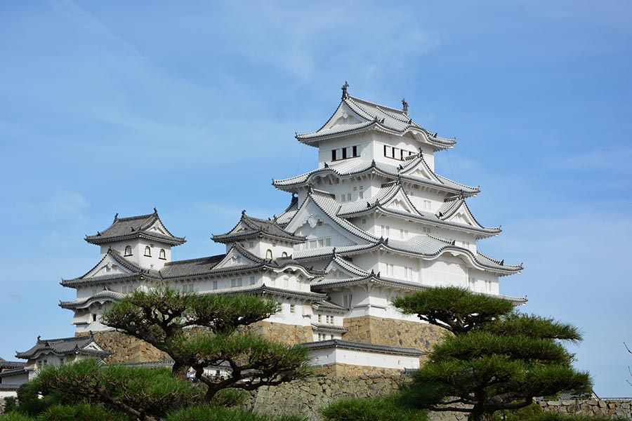 世界遺産に登録された姫路城は、12城しか残っていない現存天守の一つで、真っ白な外観から白鷺城とも呼ばれる。