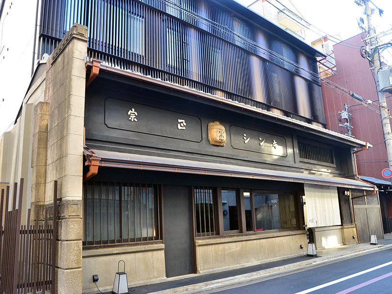 「手前の建物は、1994年まで酒造メーカー『キンシ正宗』の販売所として使われていた築約100年の町家です。開始時期は不明ですが、かなり長く営業されていたと聞いています。その建物を改修し、ホテルのロビー・ラウンジに。奥は5階建ての宿泊棟で、今回新しく建てたものです」