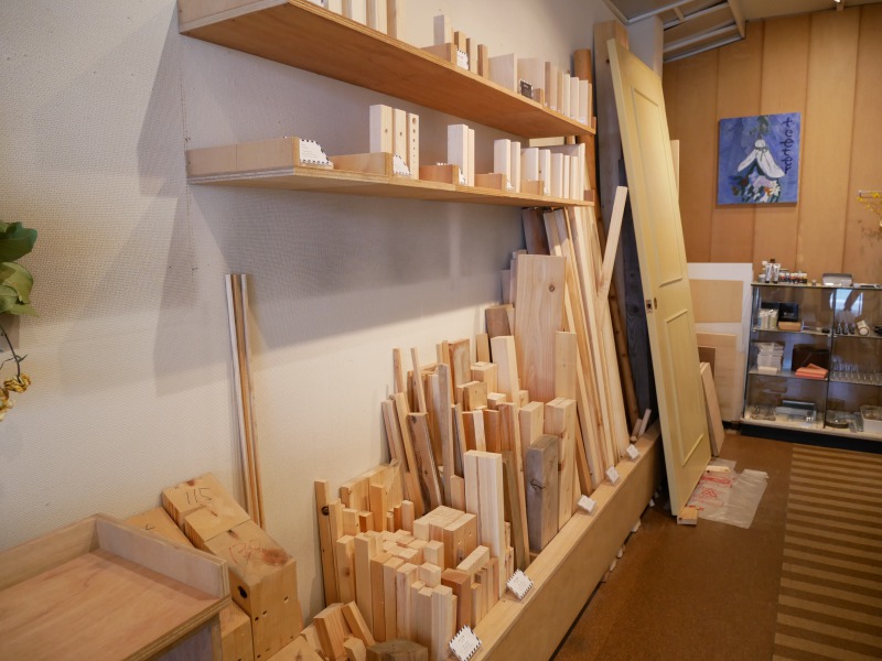 工房の隣にはショップも併設。解体作業で出た廃材やプロジェクトで残った木材をDIY用に販売している。木材は30センチ単位で50円ずつ料金がアップ。幅や長さや形が違うものばかりだが、丸ノコなどを使えば、その場でサイズをそろえることもできる。