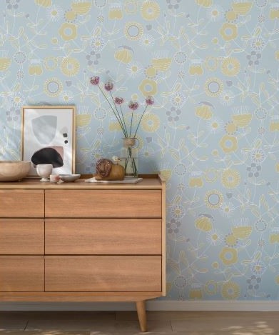 北欧調も広く好まれるテイストである。塗り壁調の無地の壁紙を使用したカジュアルなテイストや、柄で表情をつけてもいいだろう。甘い印象の花柄も、淡いブルーにすれば落ち着いて爽やかな印象となり、家具や小物とも合わせやすいソフトなノルデック空間が作れるだろう。