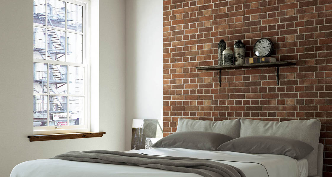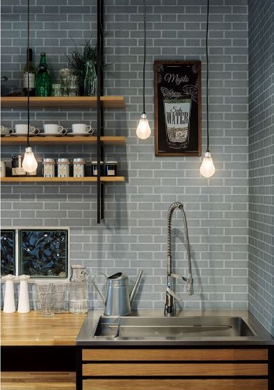 柄はもちろんだが色による印象を忘れずに。素朴にしたいのか、洗練された印象にしたいのかをイメージして色を決めるとよい。レンガ柄は木やステンレスとも相性がいい。手軽な小物を合わせれば、すぐにでも絵になるスペースが作れるだろう。