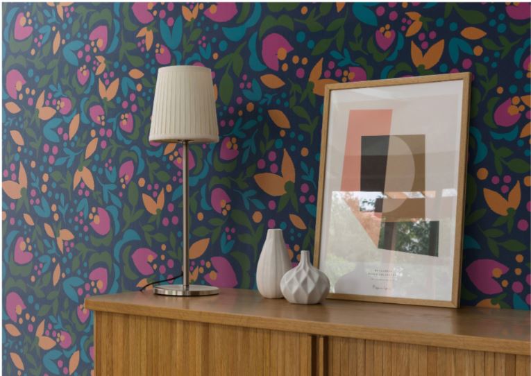 70年代のファションが人気である。オレンジやピンク、深い緑のグラフィカルな柄がノスタルジックな雰囲気を醸す壁紙で、タイムスリップしてみてはいかがだろう。深い色の壁紙は背景となり飾るものを引き立ててくれる。壁紙で背景をつくり小物を飾るコーナーにしてもよいだろう。壁に合わせた小物を見つけにアンティークショップや蚤の市を巡るなど、特別な思いも湧きそうだ。壁紙を替えてみたら、いつかやってみたいと思っていた暮らしが訪れるかもしれない。