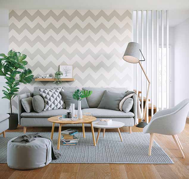 部屋で運動やゲーム、ワークアウトをするようになったという方もいるだろう。大胆なモチーフで軽快な動きのある幾何柄は、ワークアウトや軽い運動をするリビングの壁にも向きそうだ。
