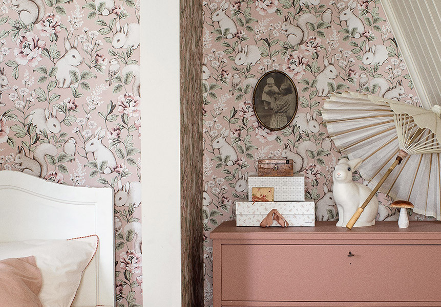 森でふわふわのうさぎに出合ったような、ほっと優しく包まれる壁紙はいかがだろうか。ピンクは幸せな気持ちを促しストレスを軽減してくれる。