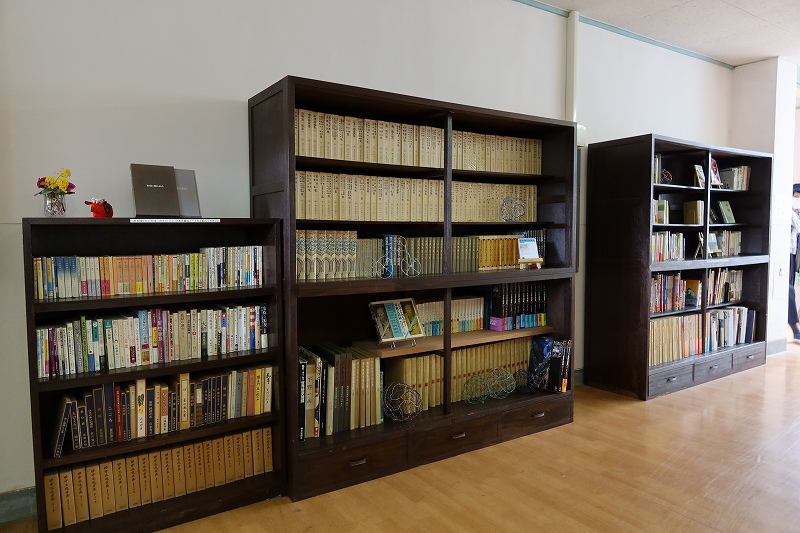 たとえば廊下にはたくさんの本棚が置かれ、文学全集や絵本、新書、文庫といろいろな書籍が並べられている。これを整理、管理する仕事をしているのは地元のボランティア。司書の資格を持った人が支えているそうで、来客に朗らかな声で挨拶、楽しそうに本を手にしていた姿が印象的だった。