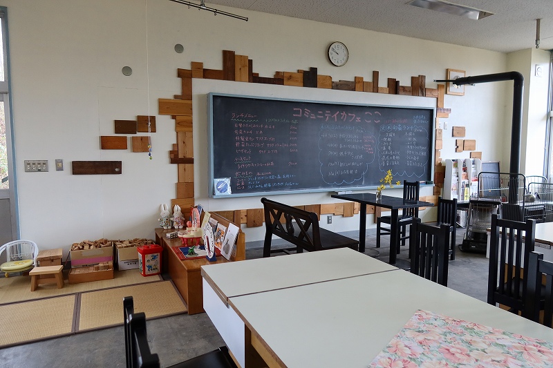 校舎の右側の一番奥には調理を行う「らくらく食卓センター」や「コミュニティカフェここ」がある。らくらく食卓センターで作られてものは、那須町から委託を受け、高齢者のお弁当として配達されている。カフェでは、地元野菜たっぷりの定食やピザなどが評判で、これを目当てにやって来る人も少なくないとか。地域の居場所としても機能しているのだ。