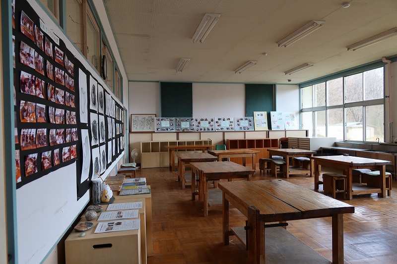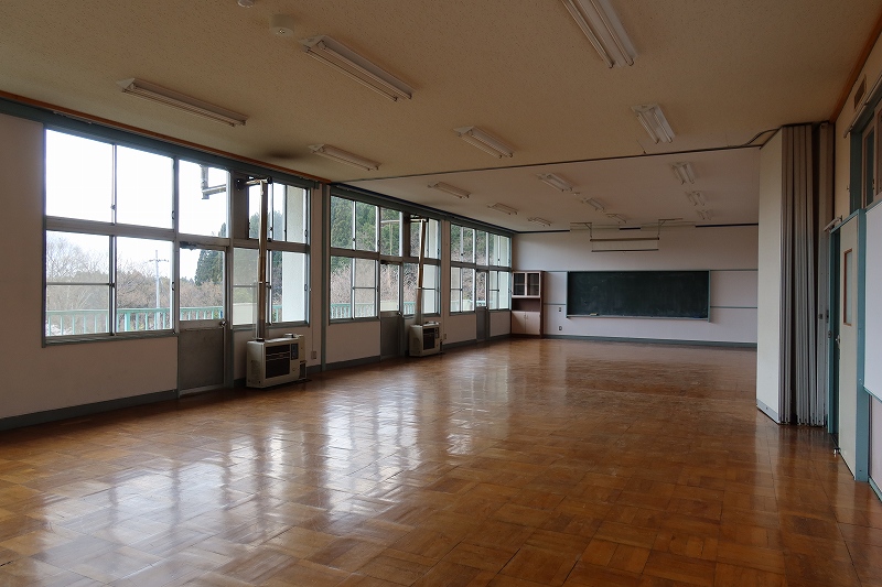 校舎は2階建て。そのうち、取材時に主に使われていたのは1階の玄関から入った左半分(施設利用案内図を参照)ほど。これは3年前に文化的交流拠点として事業に関わる個人が3,000万円ほどを投じて改修されたもので、玄関その他小学校だった当時の面影を残して使われている。