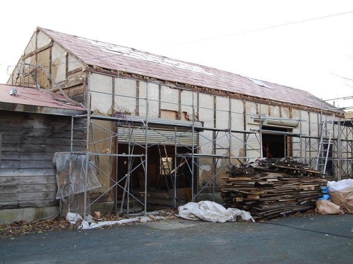 出迎えるのは、築70年以上の納屋とレンガ牛舎をリノベーションした建物