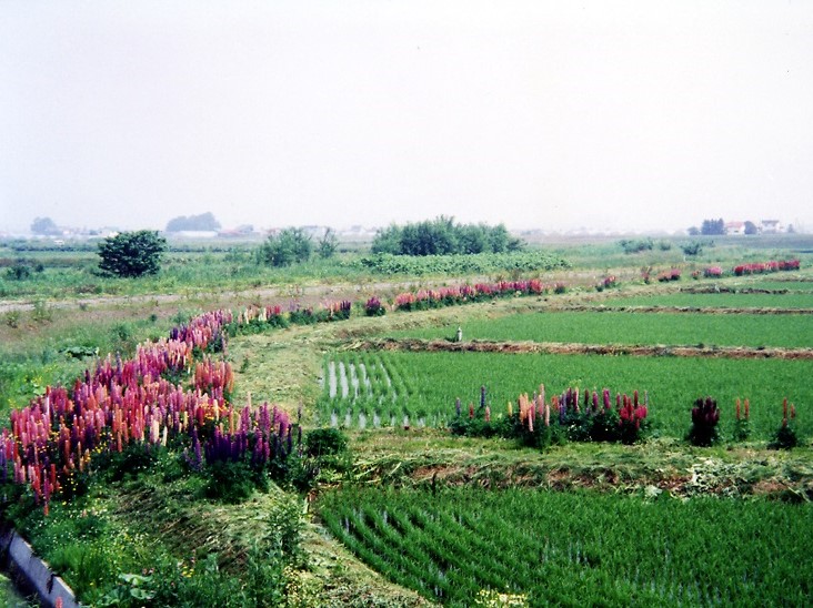 「魅せる農場をつくろう」。あぜ道のルピナスと、射的山のハーブから