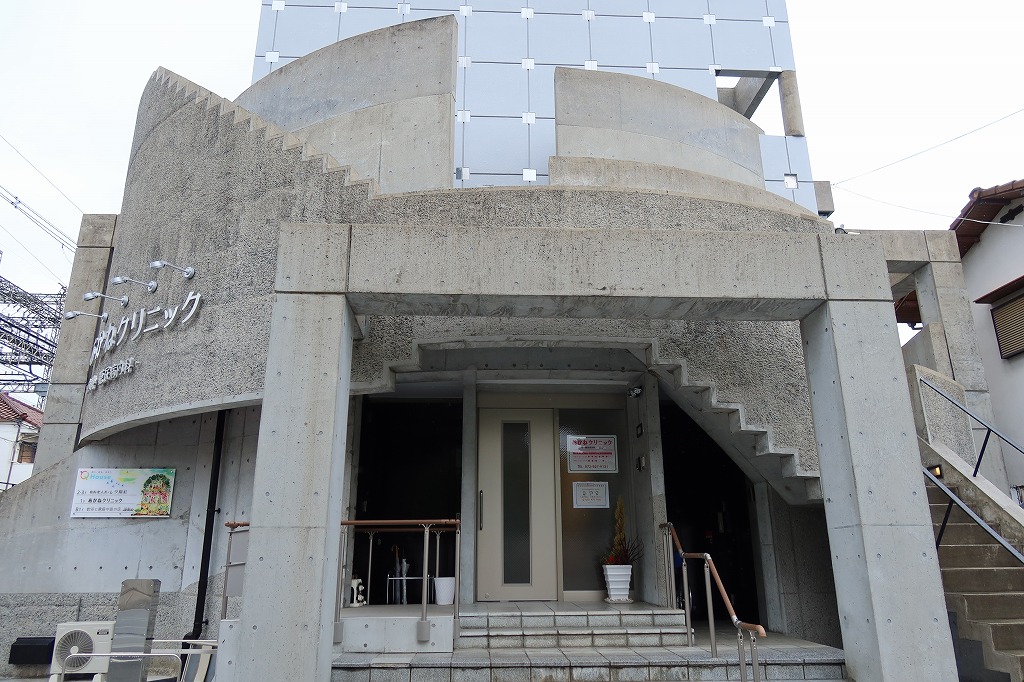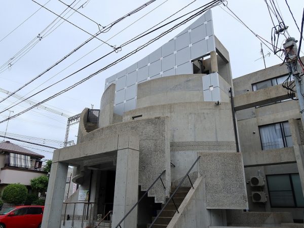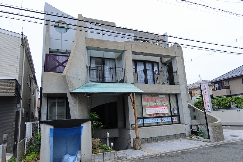 大阪府八尾市にある近鉄大阪線久宝寺口駅(きゅうほうじぐちえき)から歩いて5分。住宅街の中にひときわ目を引くコンクリート打ち放しの3階建て住宅がある。一見美術館か何か、公共建築物にも見えるが、もともとは1989元年築の二世帯住宅で、有名建築家の弟子が設計したものだという。地下に祖母、1~3階に当主一家が住んでいたそうだが、それが売りに出た。全体で400m2ほどの広さがあり、エレベーターももともとは2基あり、サウナなどもある豪奢な作りだったが、それだけに販売は難航した。
