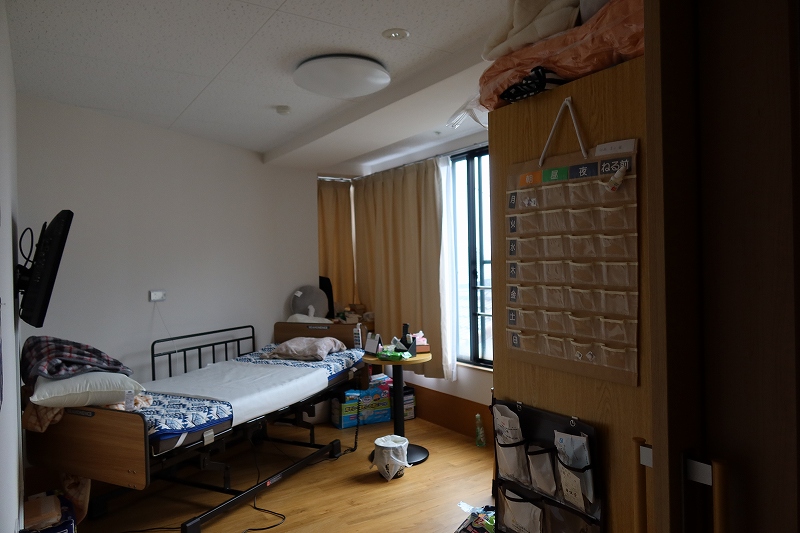 現在の入所者は介護度3が1人、介護度5が5人でうち1人は胃ろう、もう1人は難病指定と圧倒的に重度の人が多い。ほかで断られた人も受け入れているとのことで、10人ほどのヘルパーで丁寧に面倒を見ているという。