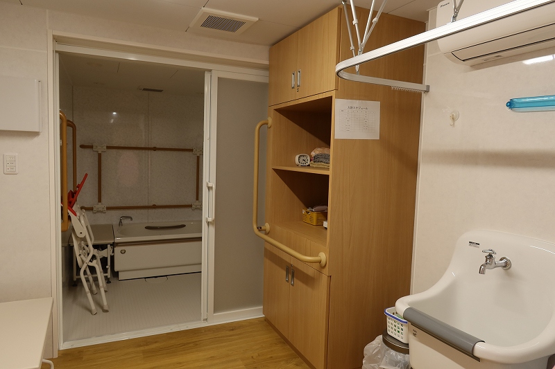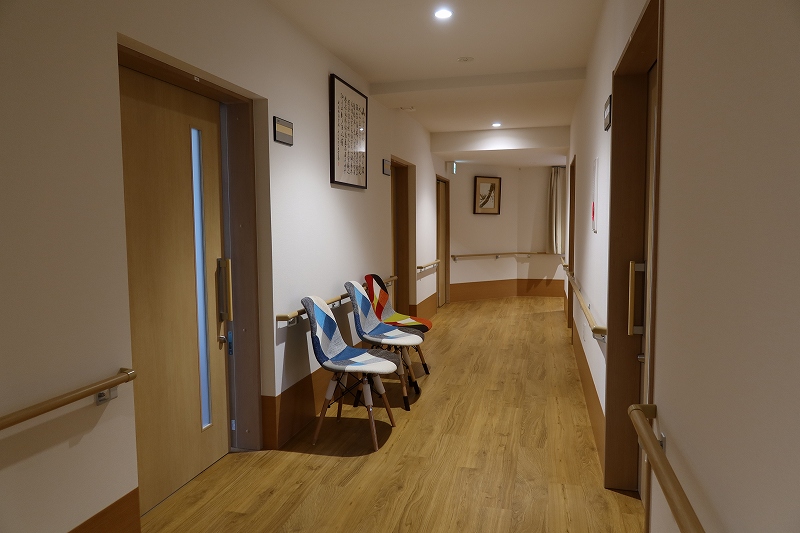 最後に2~3階の老人ホーム。現在9室中、6室が居住中で、取材時にはうち1人が2週間の予定で入院中だった。残り3室もコロナ禍以前から予約は入っているが、本人たちにぎりぎりまで自宅で過ごしたい、子どもや配偶者に面倒を見てほしいという希望があり、入所が延びているという。